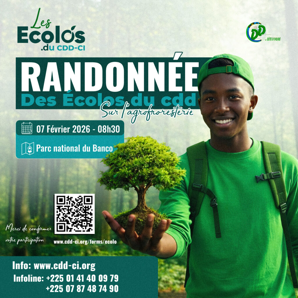 Le CDD-CI (Comité de Développement Durable – Côte d’Ivoire) vous invite à une immersion unique au cœur du “poumon vert” d’Abidjan. Pour cette nouvelle édition de la Randonnée des Écolos, nous mettons le cap sur une thématique essentielle pour l’avenir de nos terres : l’agroforesterie.